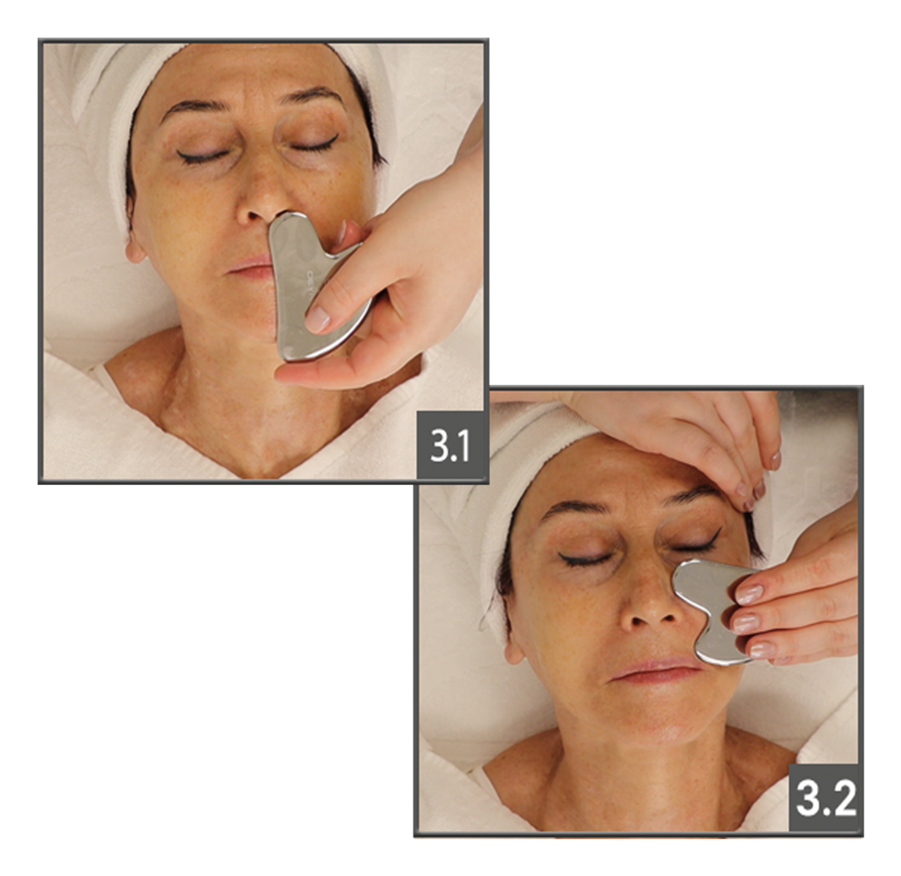 Wenn es die Haut benötigt, bekommt sie eine zusätzliche Massage-Einheit rund um die Nasenpartie. Das harmonisiert und liefert einen weiteren Schub zur Förderung der Durchblutung.